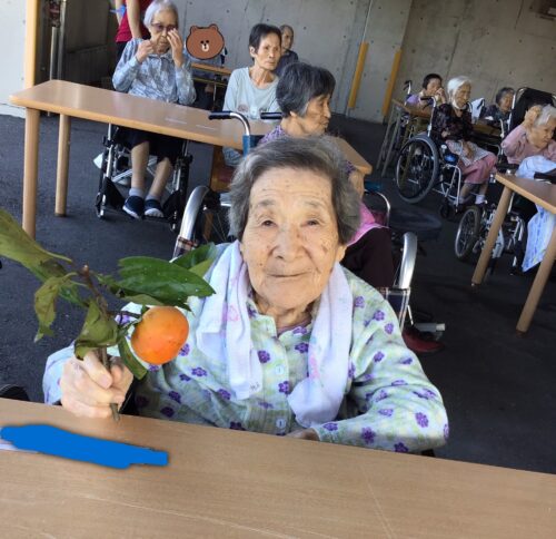 地下駐車場の近くに柿が成っており、皆様にも秋の風物詩に触れていただき、