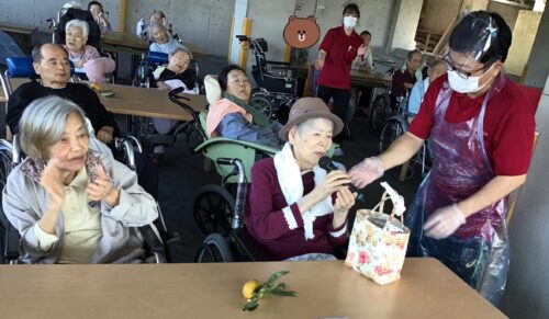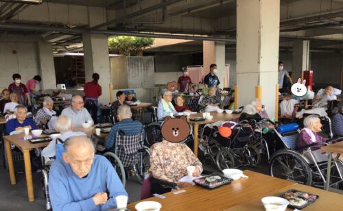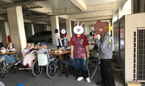 10月15日、当事業所の地下駐車場にて屋外食を実施