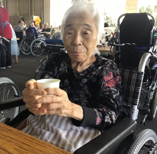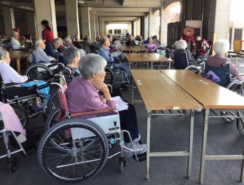 まずは職員のアコーディオン演奏に合わせて合唱したり、