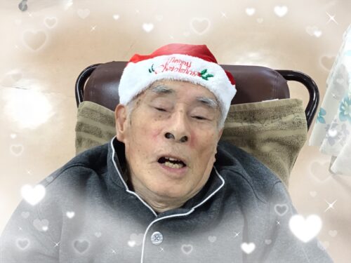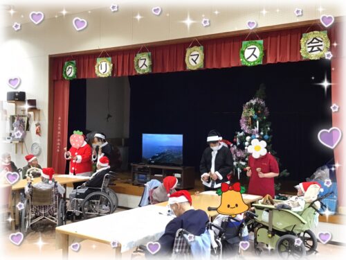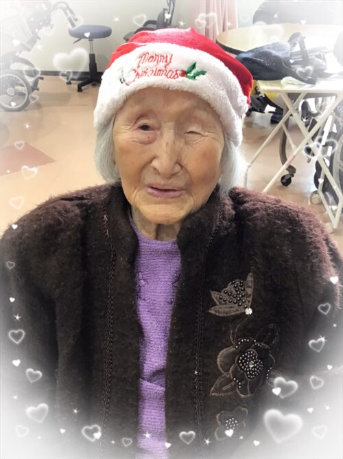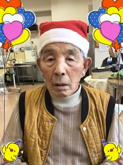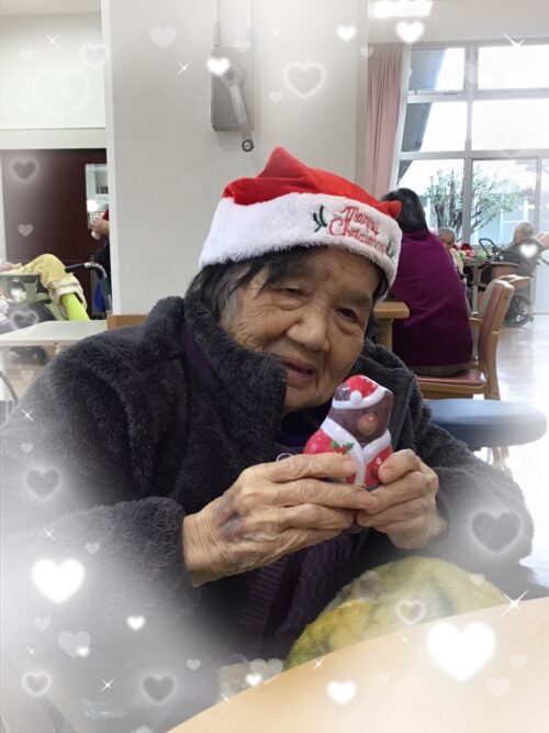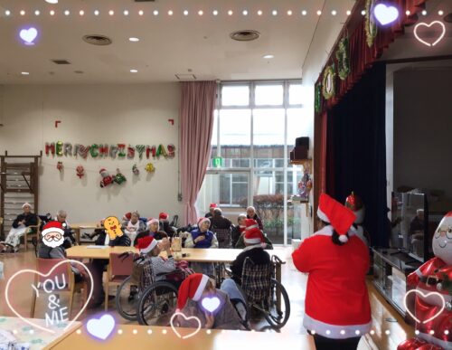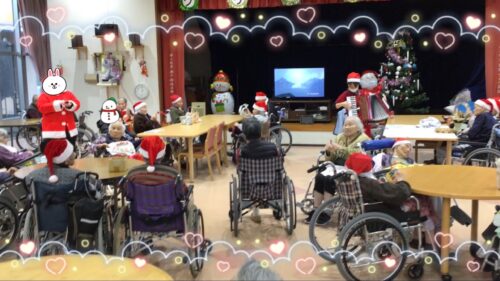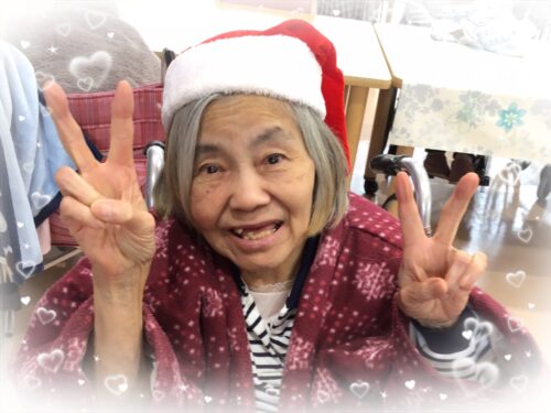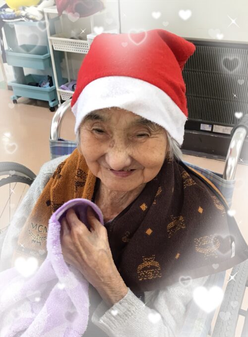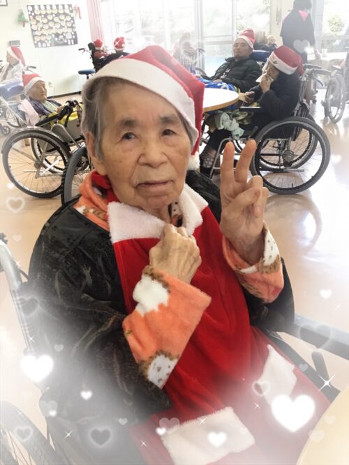 入所者の皆さまには、サンタクロースの帽子や衣装を着ていただきました✨