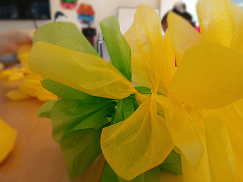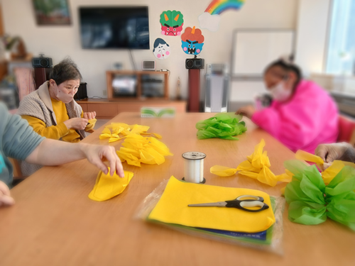 โ€‹้ป„่‰ฒใจ็ท‘ใฎ้ฎฎใ‚„ใ‹ใช็ด ๆใ‚’ไฝฟใ„ใ€็š†ๆง˜ใงๆฅฝใ—ใไผš่ฉฑใ‚’ๅผพใพใ›ใชใŒใ‚‰ใ€