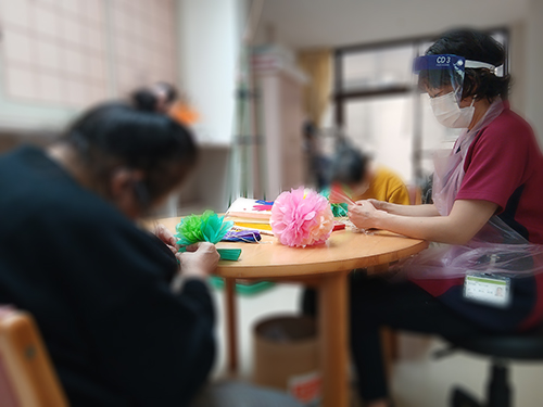 作業療法士(OT)の濵田先生のもと、利用者様のリハビリの一環で